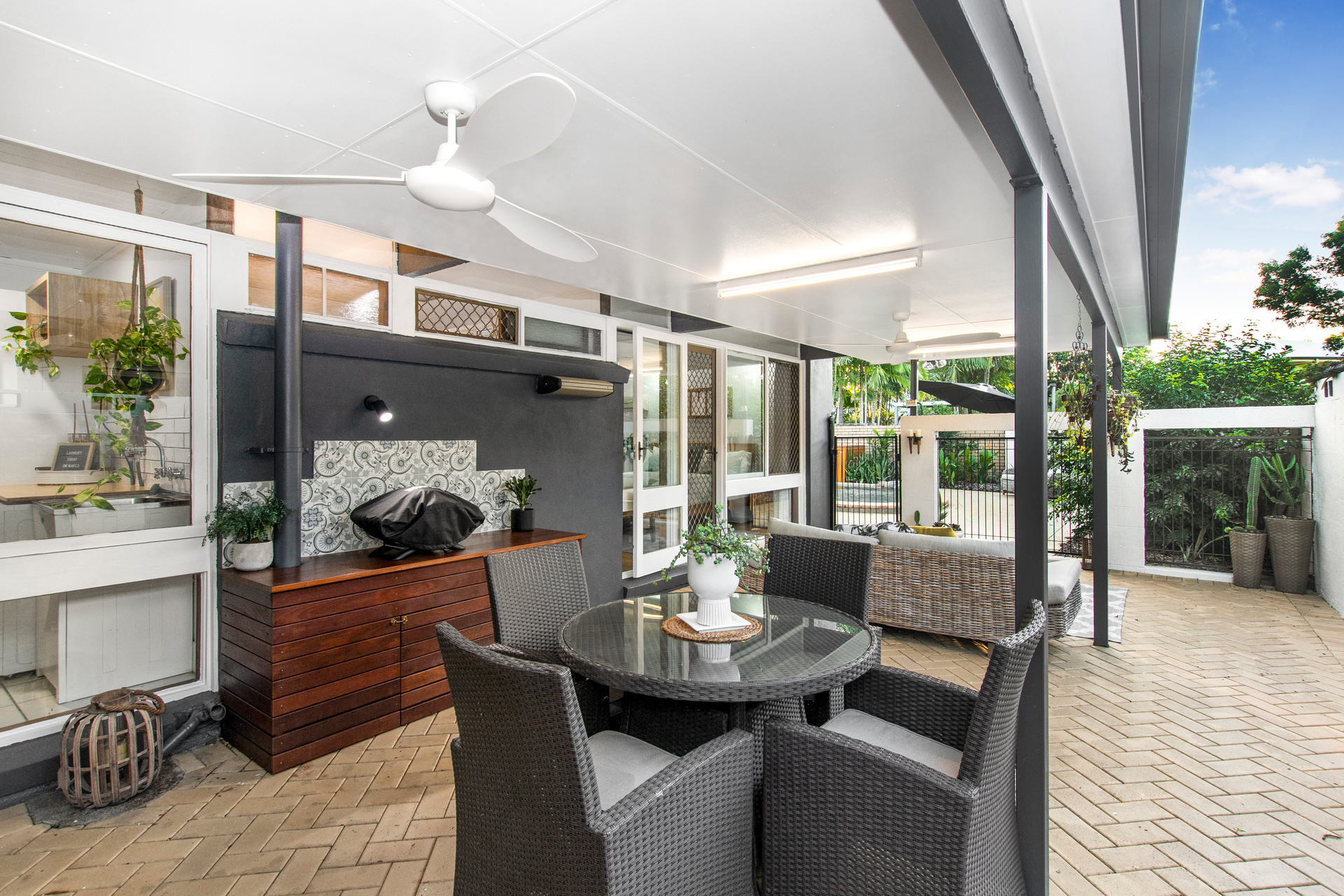 - The covered outdoor area is perfect for BBQs and family gatherings